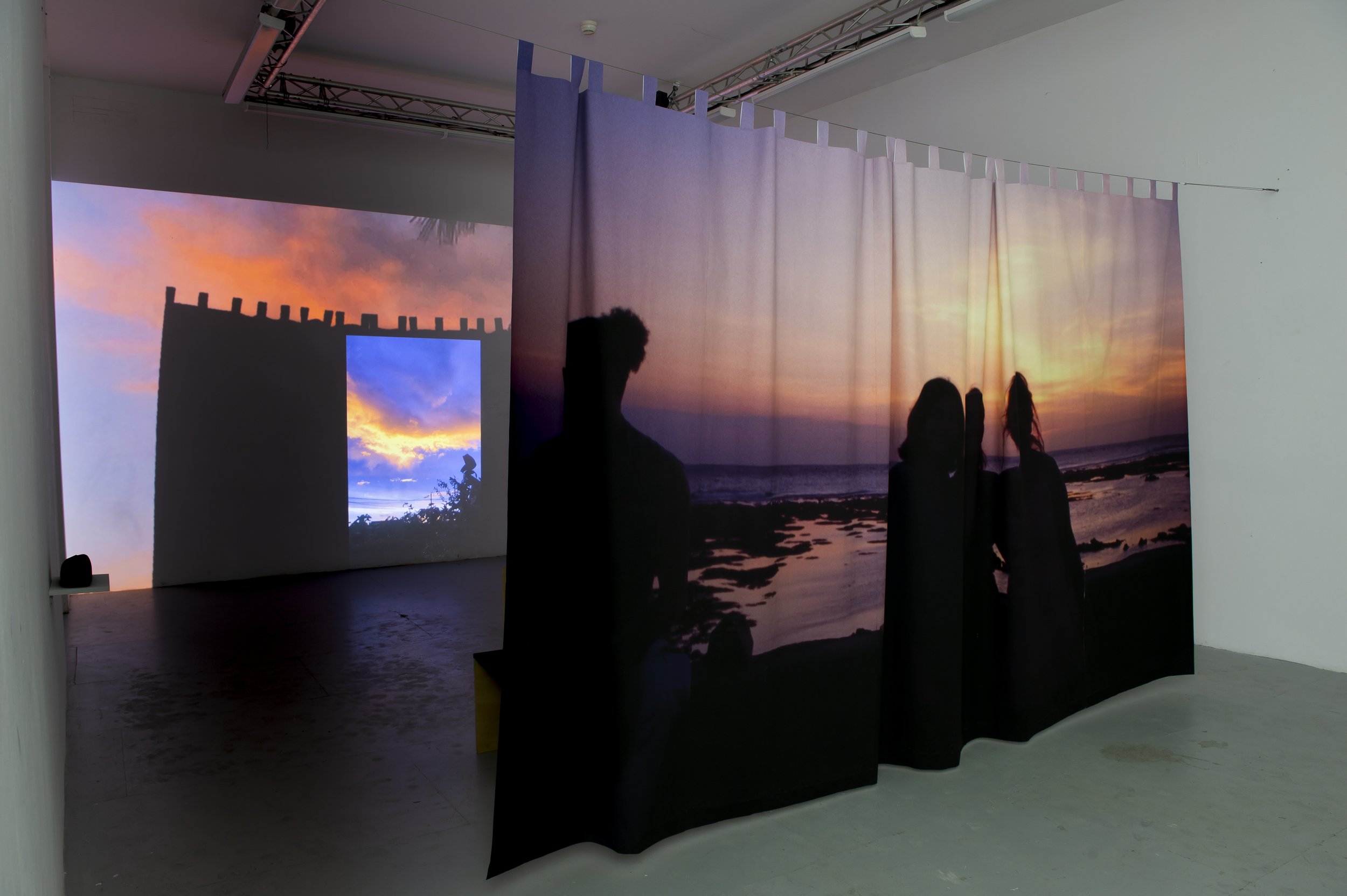 d’un rideau, une video projetée