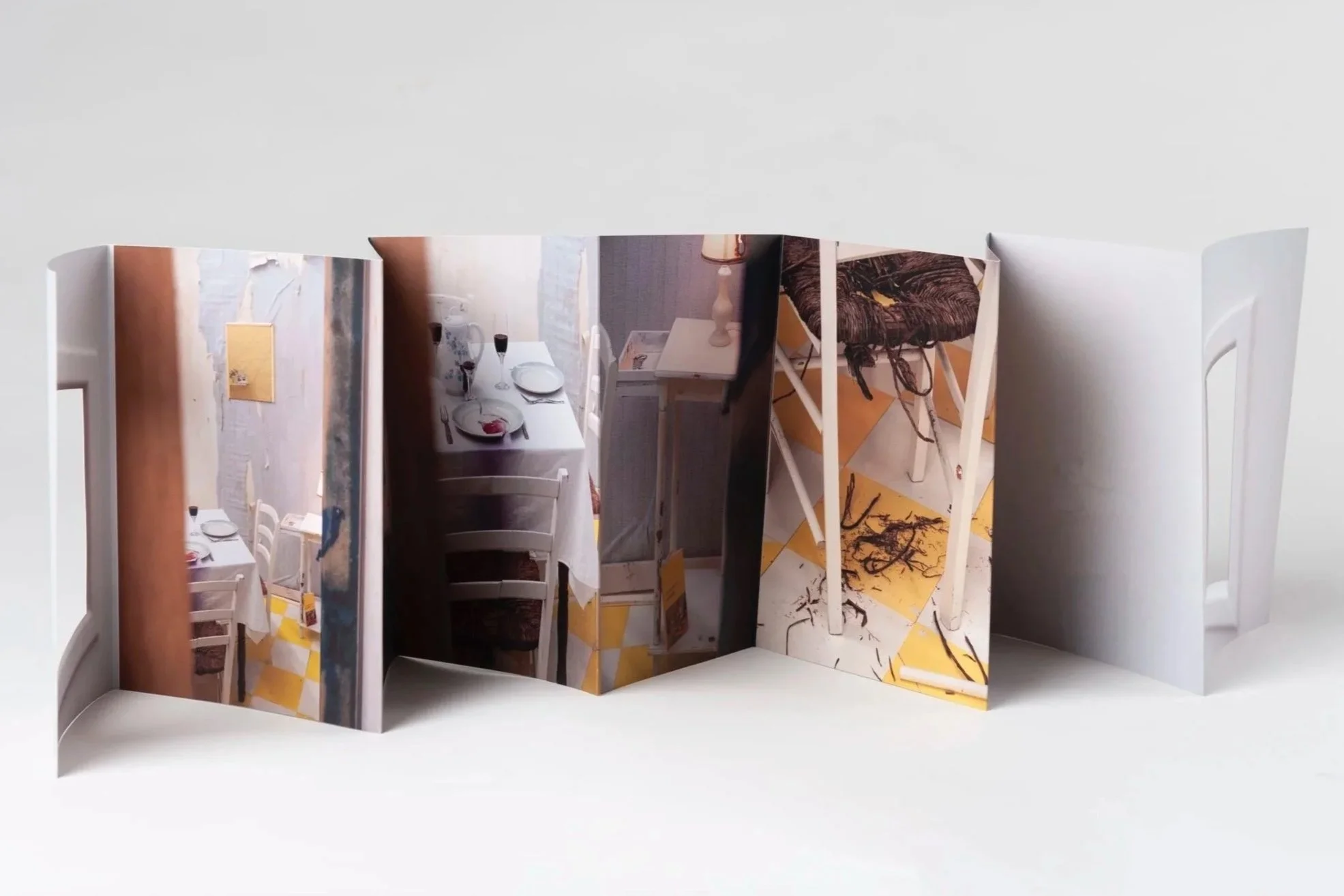 Pour chaque œuvre qui ont fait partie de l'exposition de l’artiste, je propose une remédiation en édition à partir du propos et du dispositif scénographiques qu'il a conceptualisé.