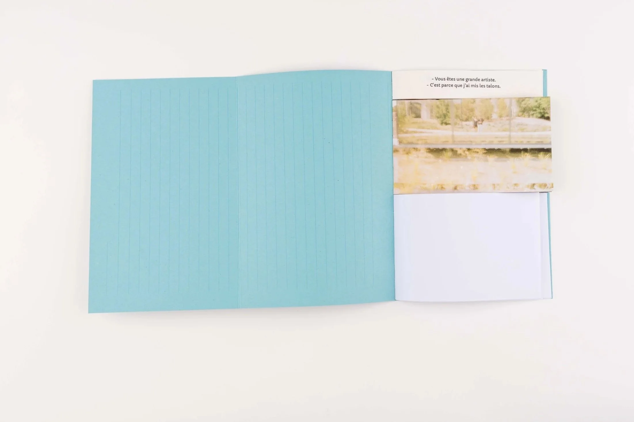 Chaque édition, ici Sensible Intuition se compose d’une dizaine de photographies à combiner avec une phrase. L’utilisateur choisi sont couple, puis à partir d’un souvenir ou d’une invention, il est invité à laisser sa trace directement dans l’espace vierge du carnet.