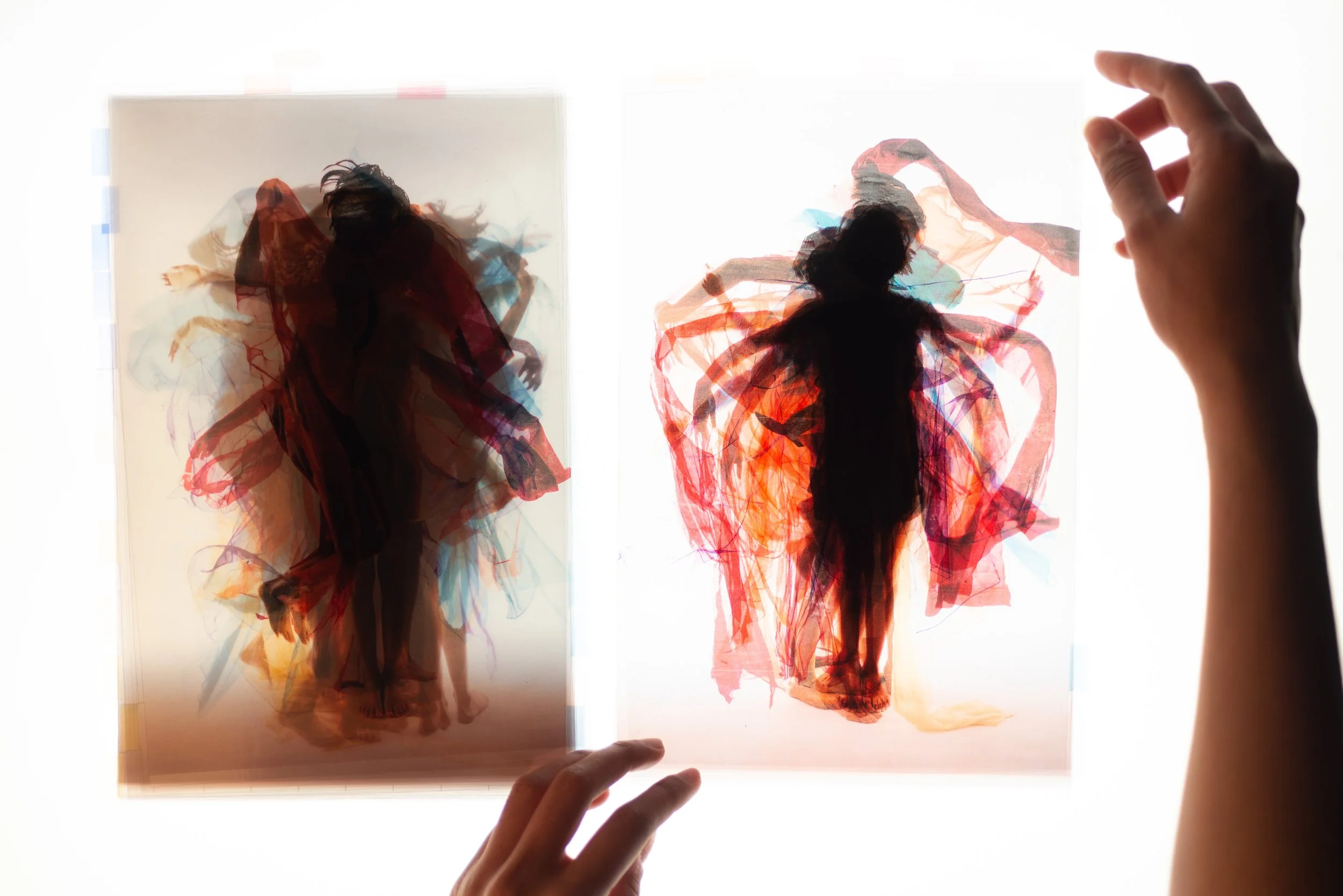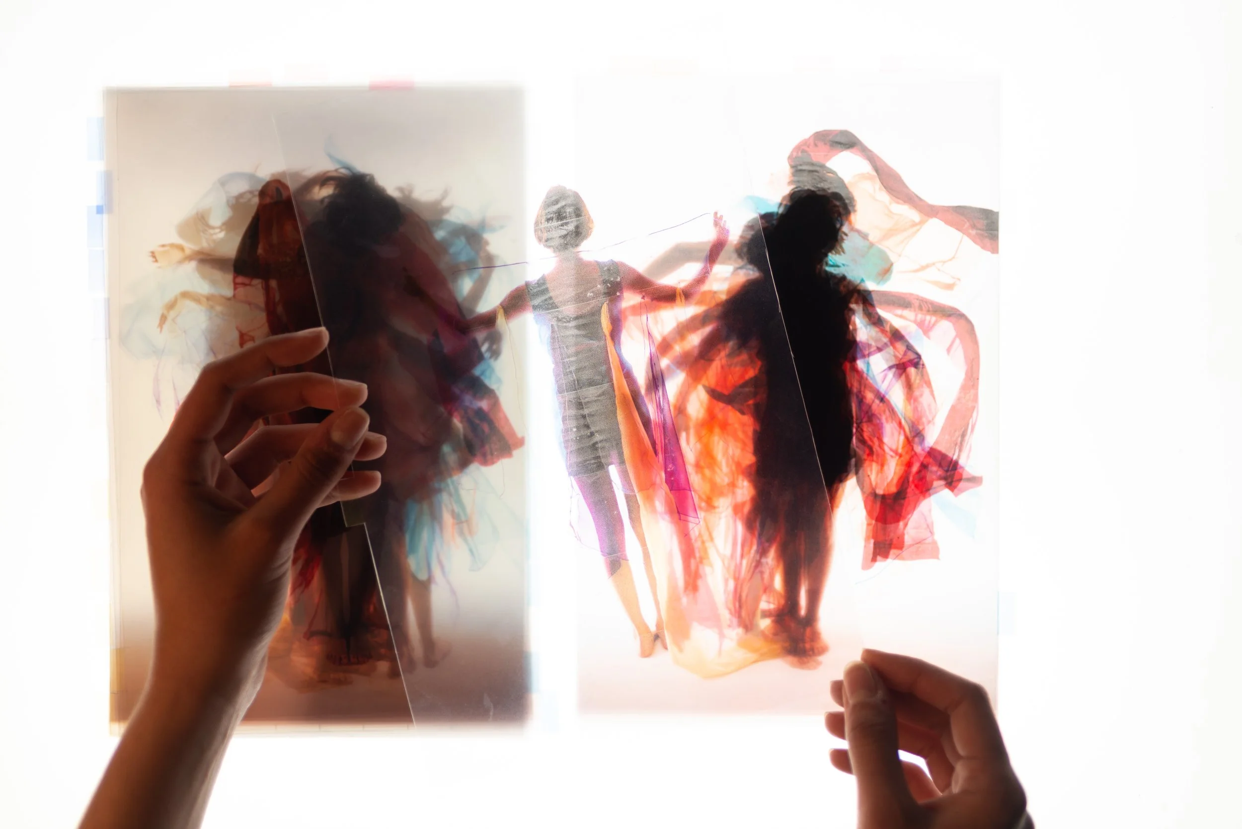 Les photographies donnent à voir la supperposition des couches colorées par la mise en mouvement des capes portées.